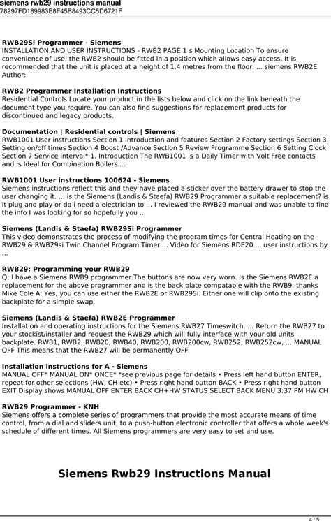 Read siemens rwb29 user instructions pdf PDF online is a convenient and frugal way to read siemens rwb29 user instructions pdf you love right from the comfort of your own home. Yes, there sites where you can get PDF "for free" but the ones listed below are clean from viruses and completely legal to use.